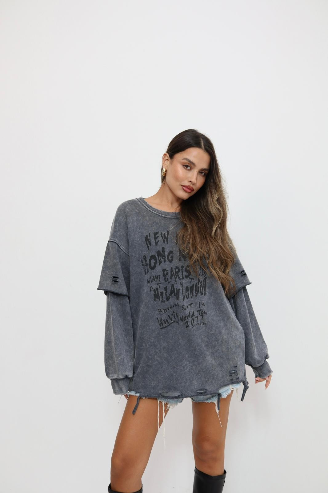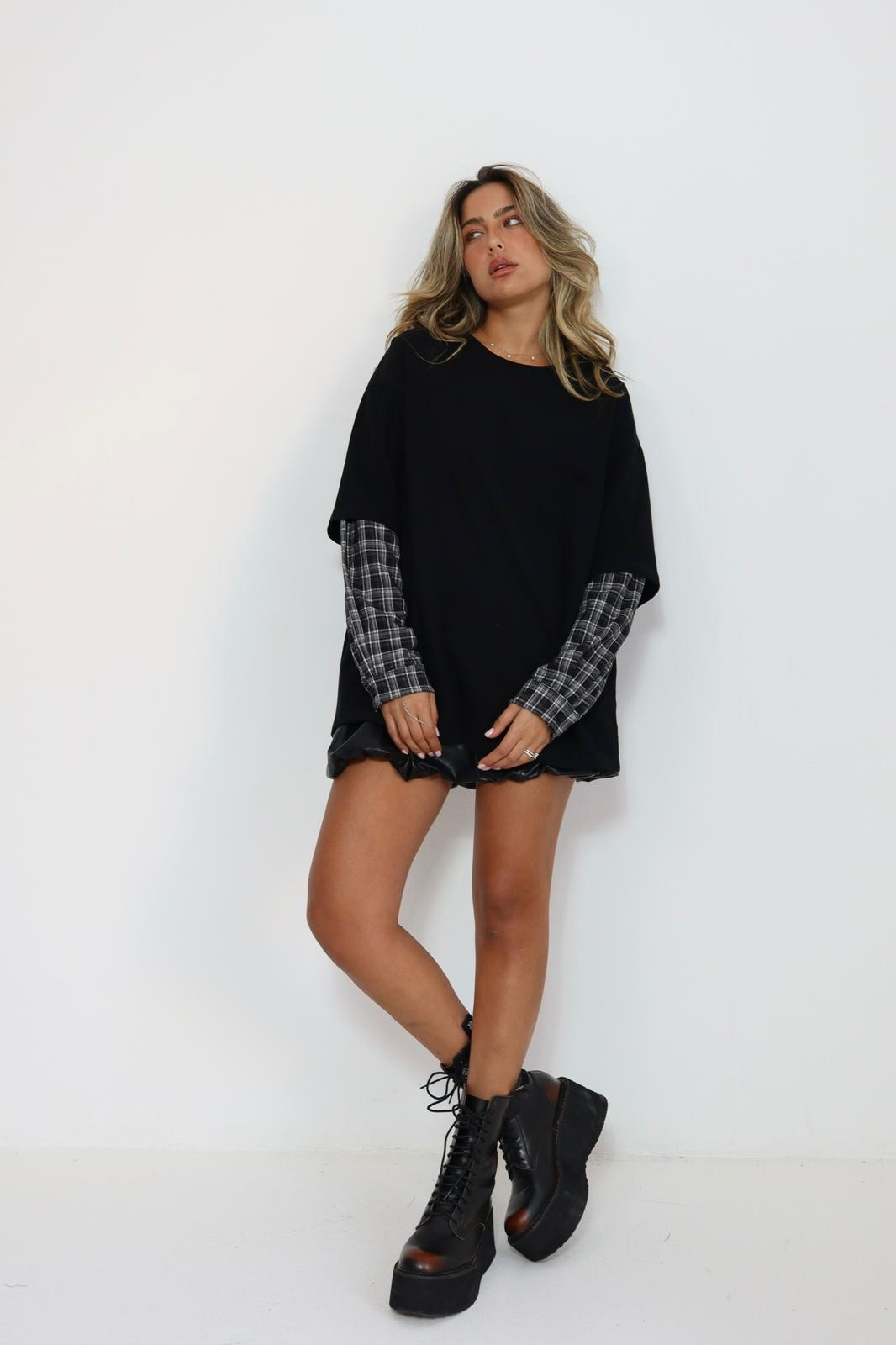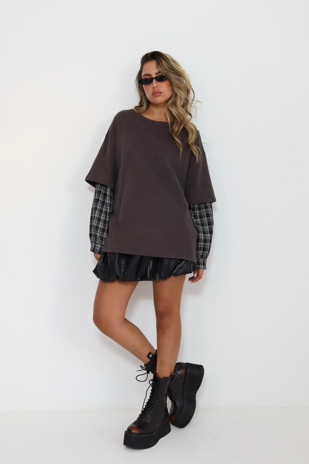 חולצה סאני שרוול משובץ