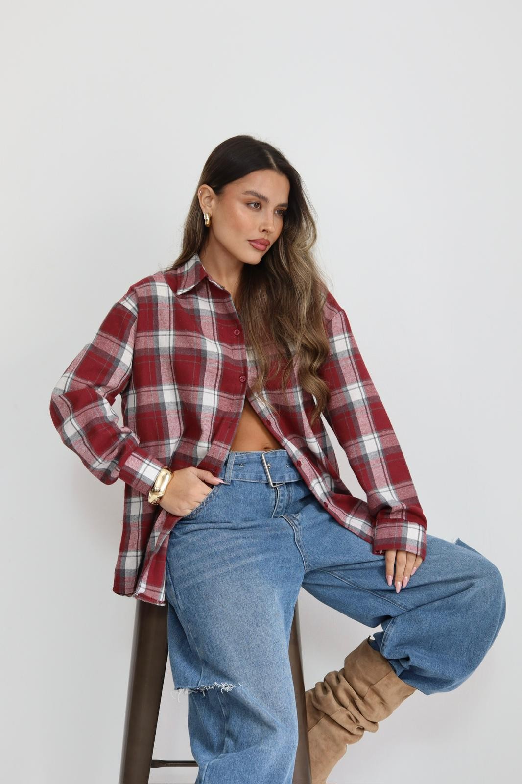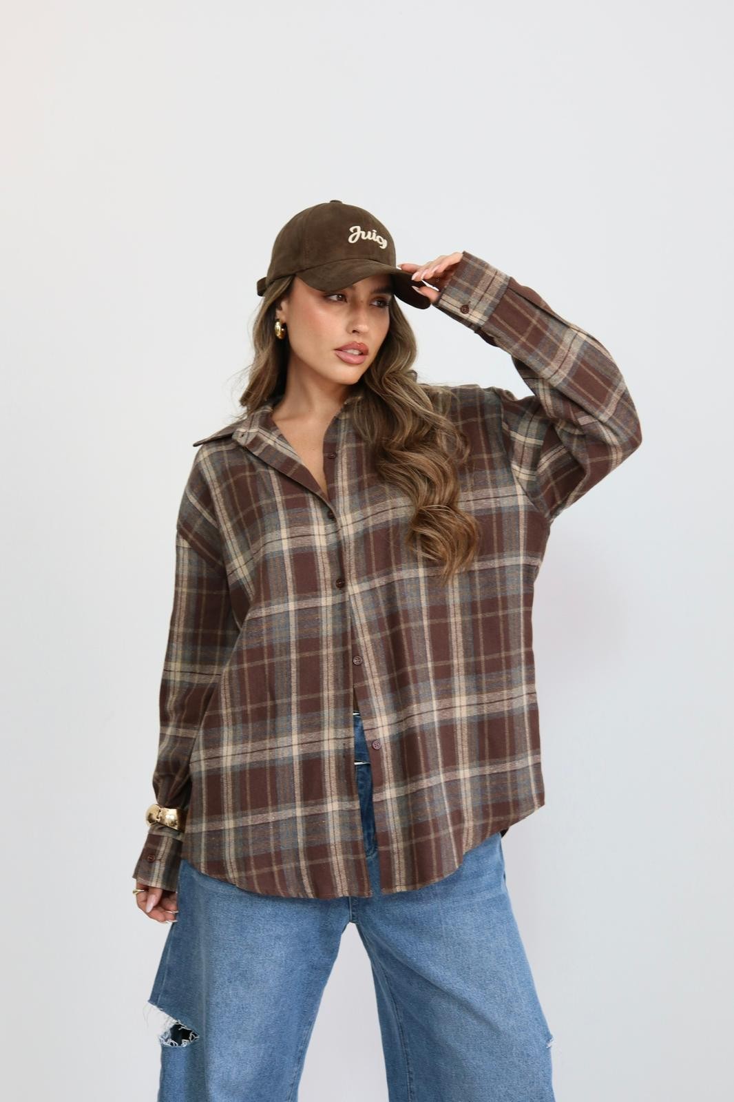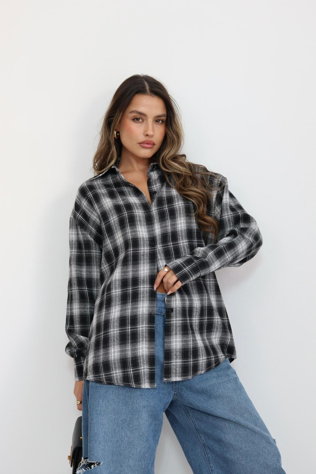 מכופתרת משבצות אובר סייז כיתוב