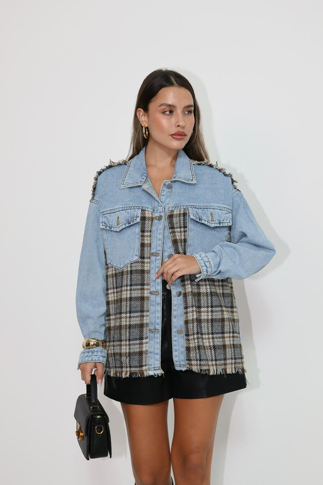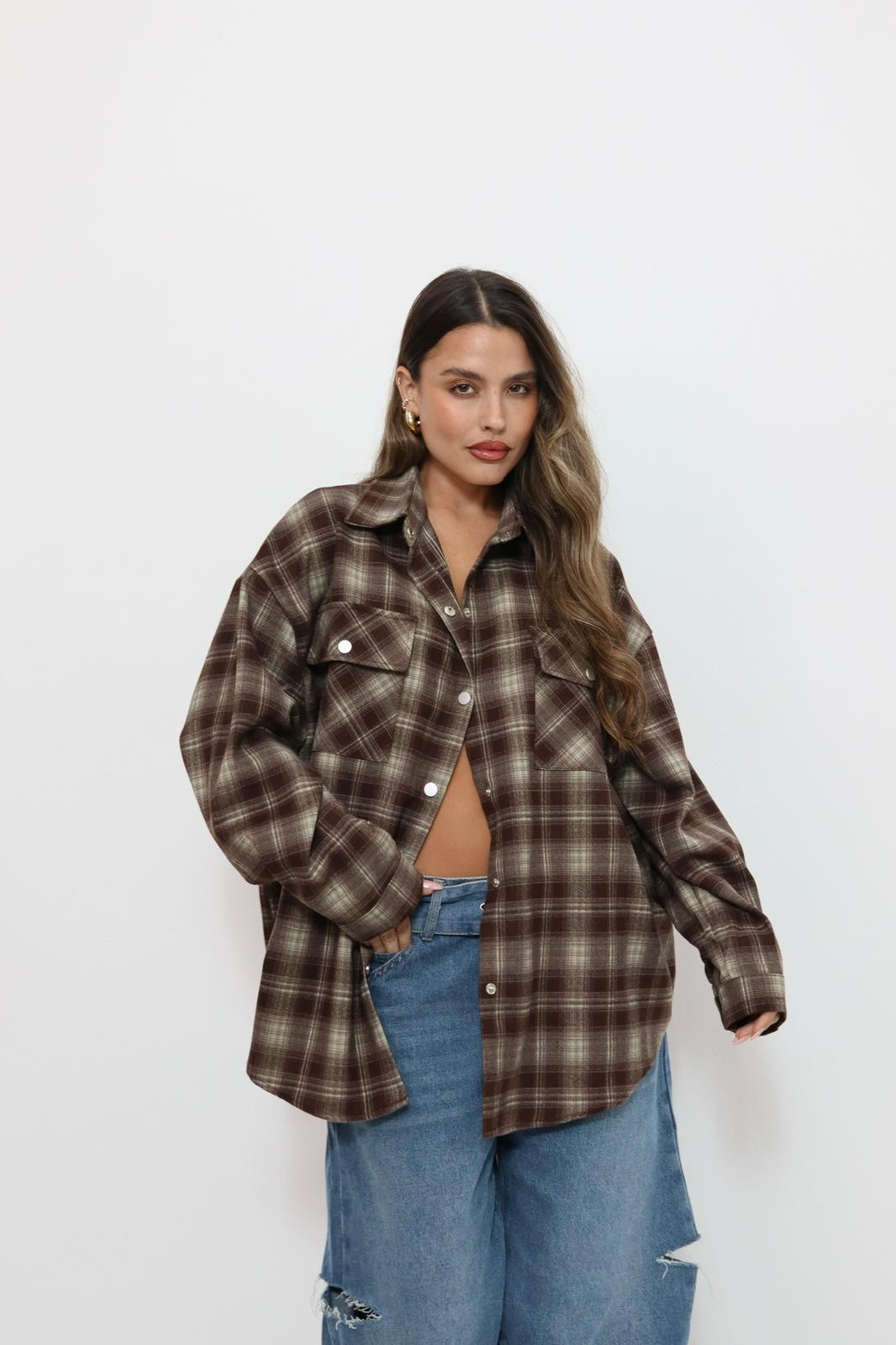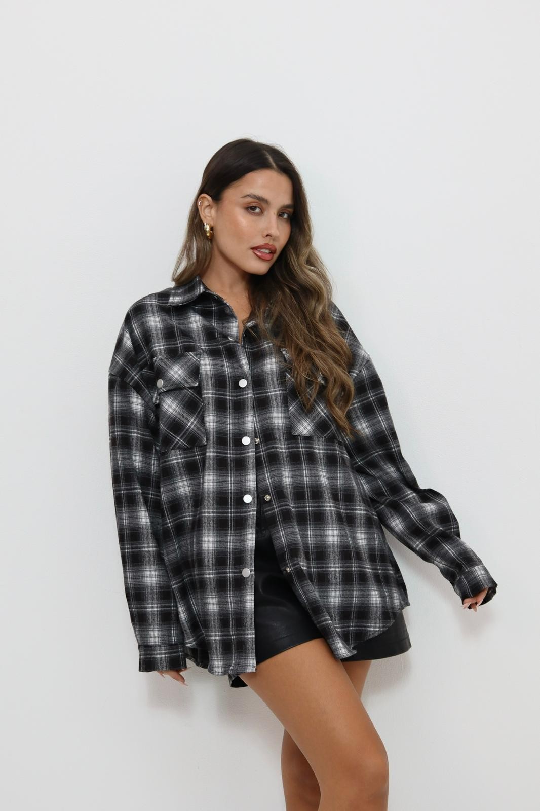 מכופתרת משבצות אובר סייז כיתוב